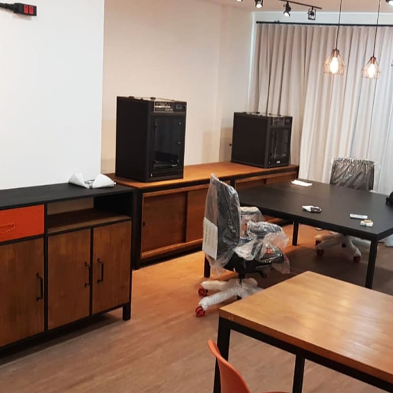 Colaboramos ativamente na criação do ambiente deste escritório, fornecendo três buffets – dois deles com elegantes portas de correr e um terceiro, que se destaca com sua estrutura em ferro na vibrante cor laranja. Além disso, disponibilizamos três mesas, das quais duas possuem tampos em MDF, enquanto a terceira apresenta um sólido tampo de madeira, proporcionando uma atmosfera aconchegante. Para completar, incorporamos duas estantes estrategicamente posicionadas, otimizando o espaço e oferecendo funcionalidade e estilo ao ambiente.