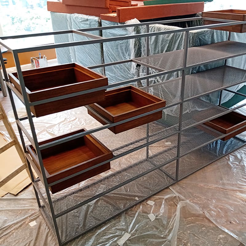 Nossos móveis industriais corporativos são verdadeiros camaleões do design, se adaptando perfeitamente a uma variedade de ambientes comerciais e empresariais. Imagine nossas estantes robustas exibindo produtos exclusivos em lojas conceito, ou nossos racks proporcionando um toque moderno a eventos e exposições. Para escritórios e espaços de coworking, nossas escrivaninhas e bancadas oferecem funcionalidade e estilo, enquanto nossos buffets e adegas acrescentam uma atmosfera única a bares e restaurantes.